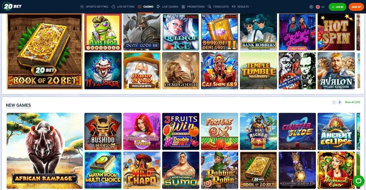 Z bogato izbiro iger, ki jih ponuja 20Bet Casino, bodo igralci zagotovo našli igre, ki ustrezajo njihovim okusom in željam. Od igralnih avtomatov do miznih iger in iger v živo, 20Bet Casino ponuja zanimivo in navdušujočo igralno izkušnjo za slovenske igralce.