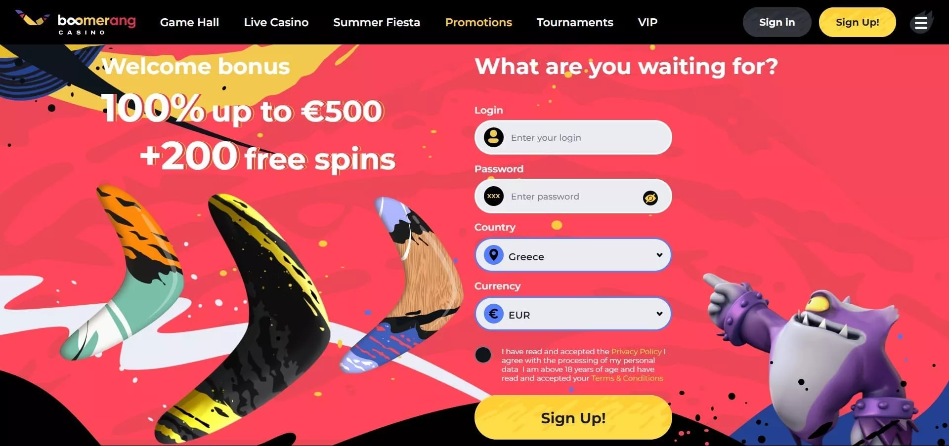 Boomerang Casino se trudi ponuditi igralcem razburljive bonuse, promocije in nagrajevalni VIP program, ki zagotavlja izboljšano in prijetno igralno izkušnjo za vse.