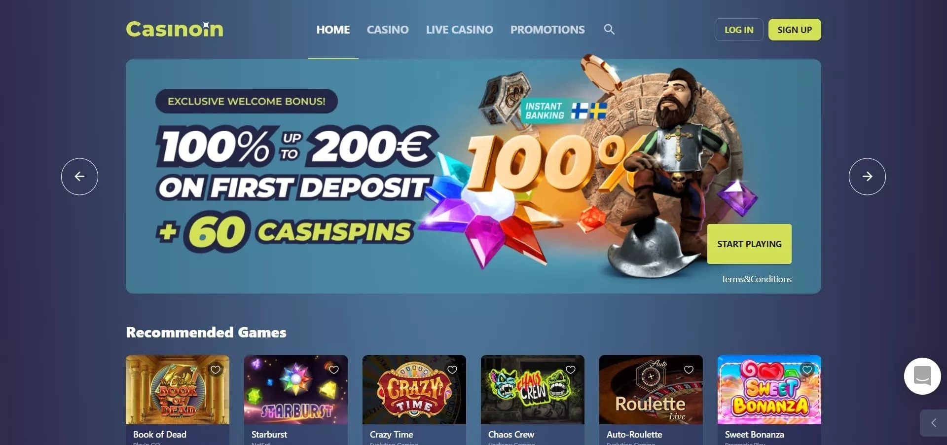 Obiščite uradno spletno stran Casinoin Casina.
