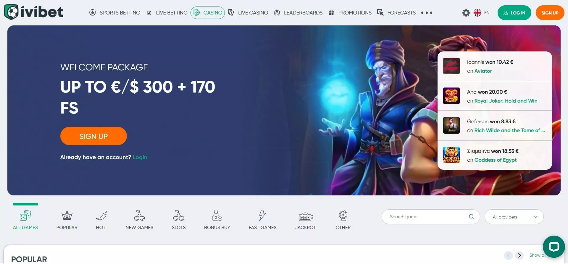 Z bogato izbiro več kot 7000+ iger iz najbolj zanesljivih ponudnikov v industriji, vam IviBet Casino prinaša nepozabno igralno izkušnjo. Sodelujejo z vrhunskimi razvijalci, med katerimi izstopajo 1×2gaming, Playson, Yggdrasil, Quickspin in Wazdan. Te priznane igralniške platforme zagotavljajo visoko kakovostne igre z inovativnimi funkcijami in impresivno grafiko. Igre kazina in igralni avtomati, ki so na voljo slovenskim igralcem, predstavljajo raznoliko izbiro.