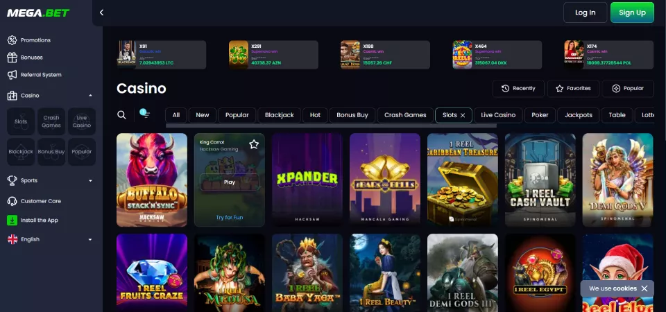 Tukaj je seznam par najbolj popularnih Mega.bet casino igre: