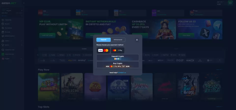 Vplačila in izplačila so ena od glavnih stvari na spletnem kazinoju, saj želimo, da naš denar poteka gladko in brez težav. Mega.bet ima to lepo poskrbeljeno, transakcije so hitre in zanesljive. Tukaj je seznam teh metod za nakazilo pri Mega.bet: