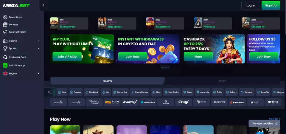 Temelji na zeleno/črni grafiki, ponuja pa vse kar si želi moder igralec na srečo. Ogromno iger, vrhunske bonuse, dober VIP program, odlične načine vplačil ter izplačil. Vse to in še več bomo pogledali v današnji pregled igralnice Mega.bet za slovenske igralce v letu 2026.