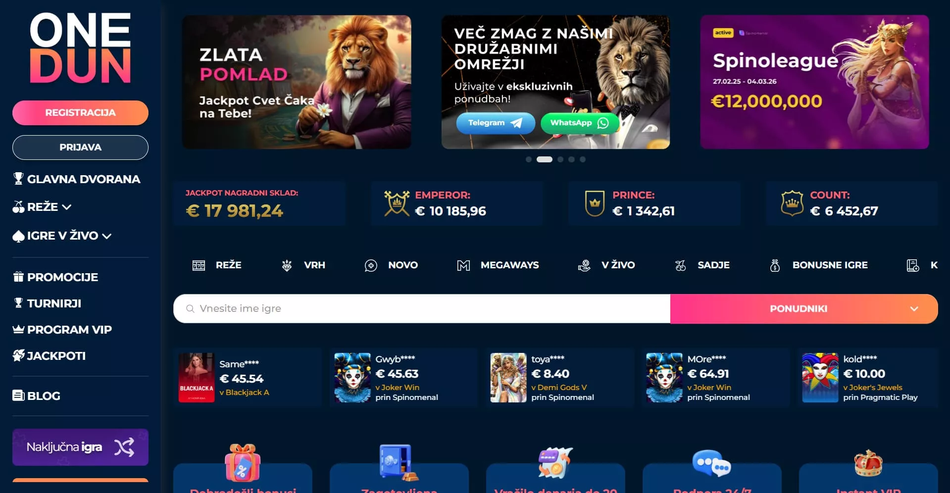 OneDun igralnica je hitro pridobial prepoznavnost med slovenskimi casino igralci. S široko izbiro več kot 2500 iger, velikodušnimi bonusi in gladko mobilno izkušnjo je zasnovan tako, da ustreza tako priložnostnim igralcem kot izkušenim mačkom z večjim proračunom. Ne glede na to, ali uživate v igralnih avtomatih, igrah z delivci v živo ali klasičnih namiznih igrah, OneDun Casino obljublja razburljivo in istočasno varno akcijo.