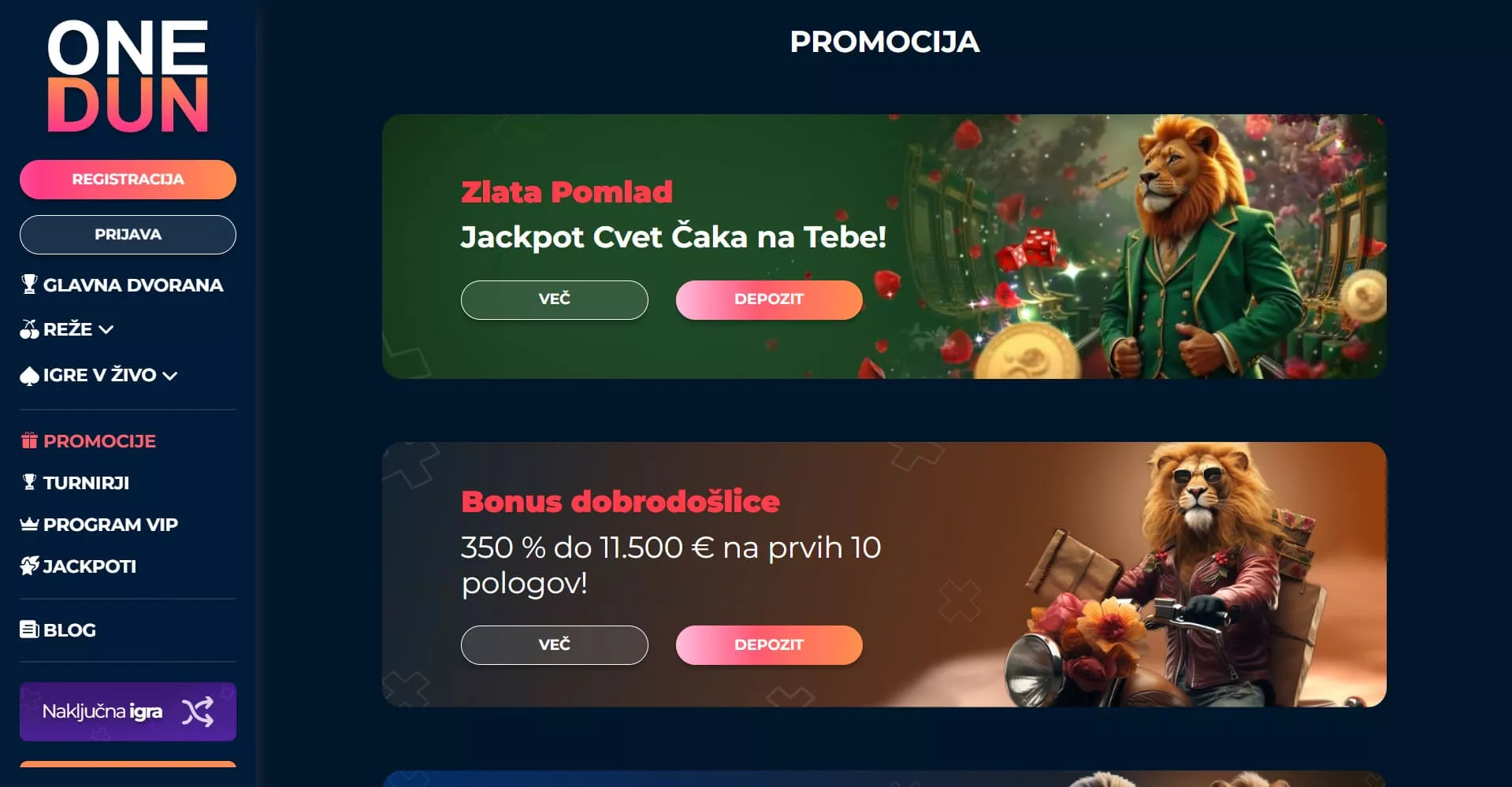 Tukaj smo bili z radodarno ponudbo izjemno zadovoljni. Čakajo vas naslednji novi bonusi v OneDun casino 2026: