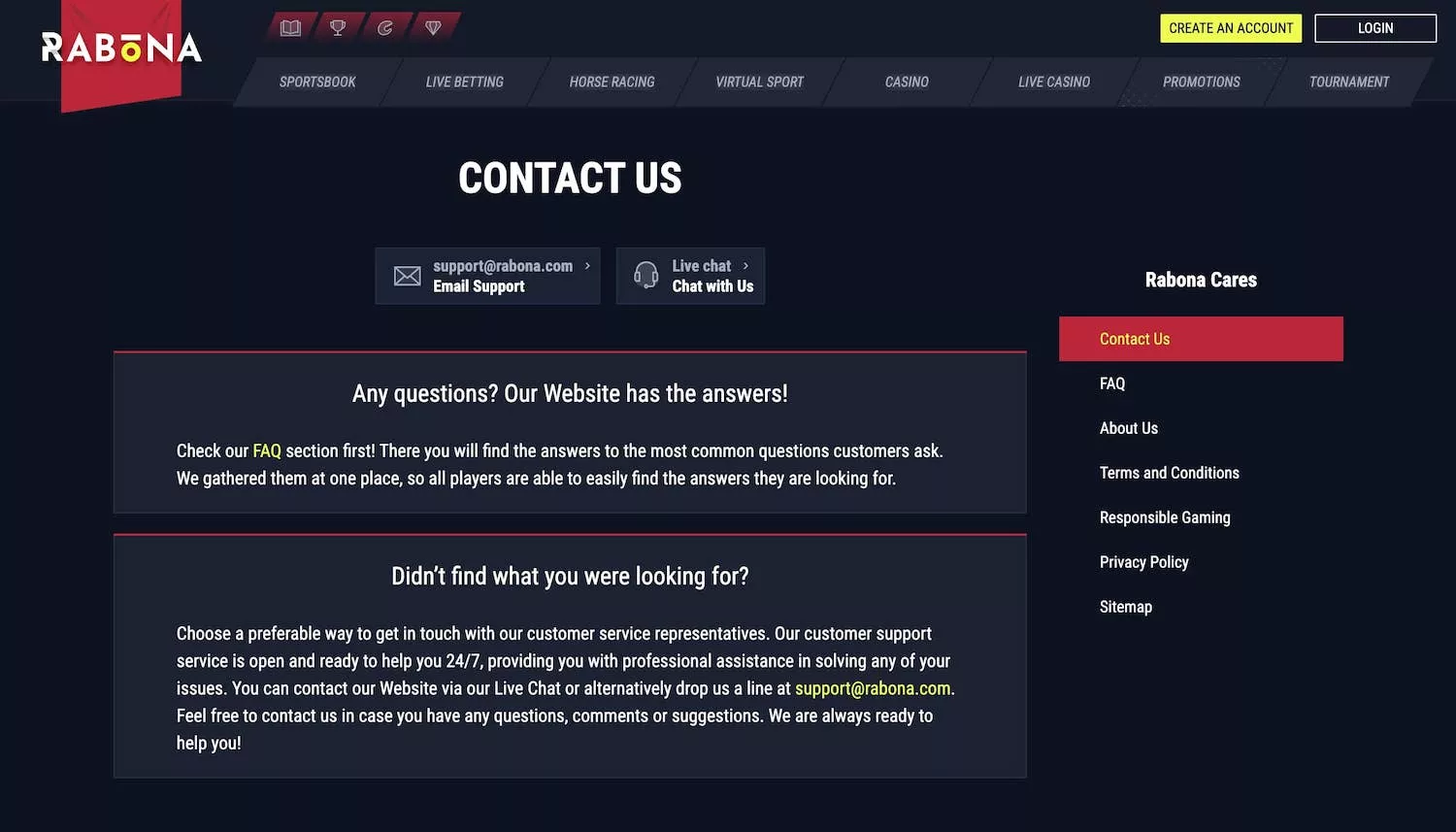Rabona Casino ponuja kakovostno podporo strankam, ki je na voljo za reševanje vprašanj in zagotavljanje pomoči. Igralci lahko stopijo v stik s podpornim osebjem na več načinov.