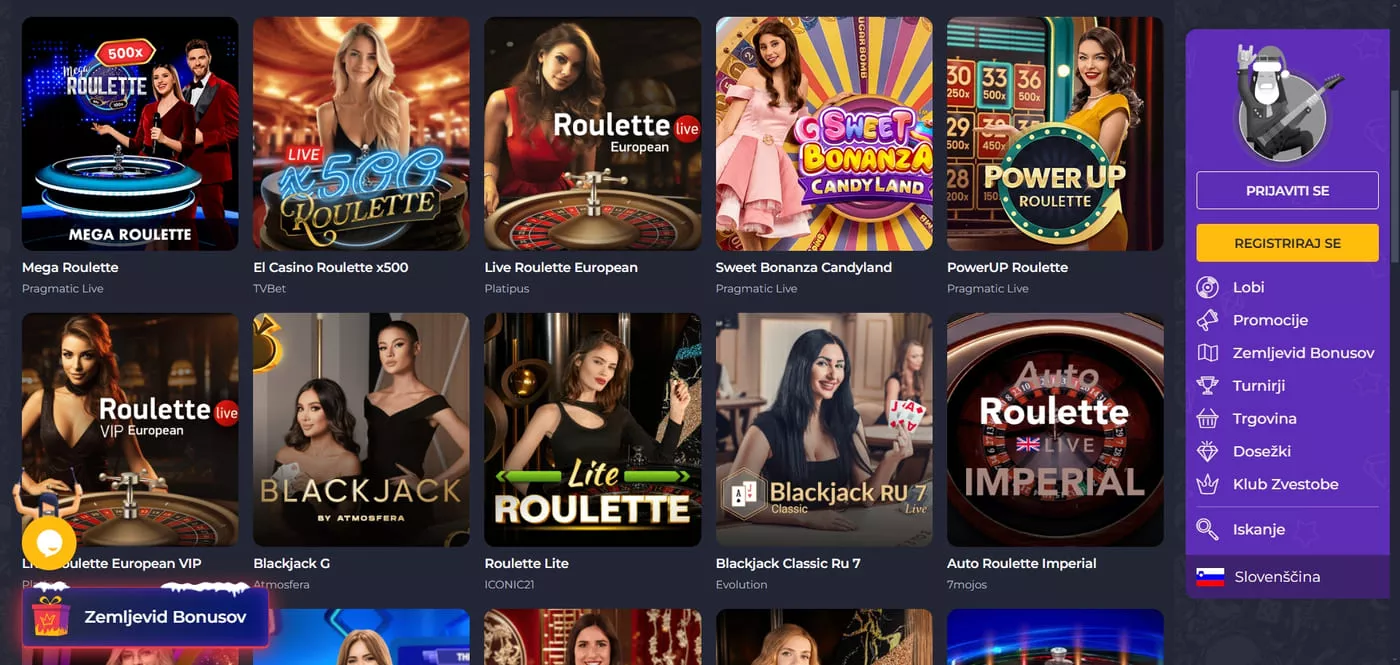 Platforma ponuja obsežno knjižnico igralnih avtomatov, ki vključuje klasične tri-valjčne avtomate, moderne video avtomate in progresivne jackpot igre. Posebno mesto v ponudbi zasedajo tudi namizne igre, kjer lahko igralci izbirajo med različnimi različicami rulete, blackjacka, baccarata in pokra. Za ljubitelje pristne kazino izkušnje je na voljo sekcija z igrami v živo, kjer profesionalni delilci vodijo igre v realnem času.
