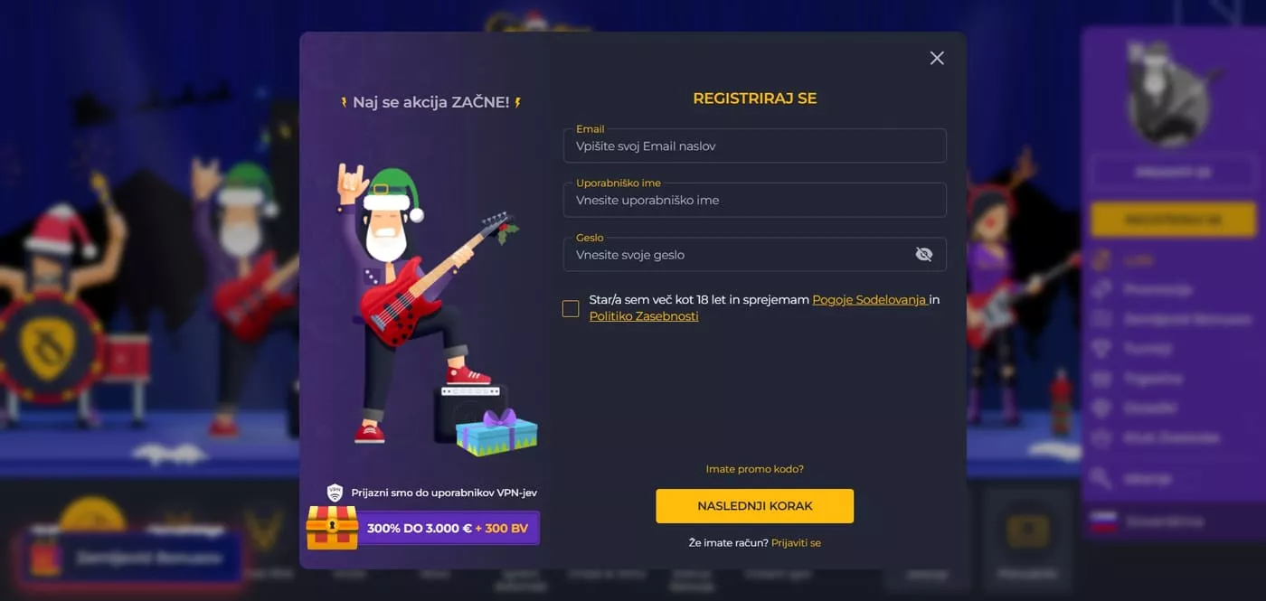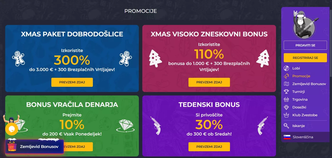 Za bolj izkušene igralce je na voljo poseben VIP božični bonus, ki prinaša 110% bonus do €1.000 skupaj s 300 brezplačnimi vrtljaji. Ta ekskluzivna ponudba zahteva minimalni polog €50 in je posebej zasnovana za člane VIP programa. Bonus omogoča večjo fleksibilnost pri igranju in višje limite stav.