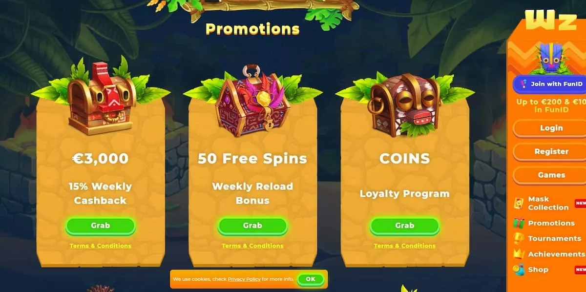 Wazamba Casino igre, poleg obsežne zbirke iger od vrhunskih ponudnikov, kot so NetEnt, Microgaming, Yggdrasil in Evolution Gaming, ponuja tudi privlačne promocije in bonuse za nove in obstoječe igralce. Novi igralci so upravičeni do velikodušnega bonusa za prvo vplačilo, ki jim omogoča, da začnejo svojo igralno izkušnjo z dodatnim zagonom. Obstaja tudi več rednih promocij, ki se nenehno spreminjajo, kar igralcem zagotavlja dostop do razburljivih ponudb in priložnosti za večje nagrade.