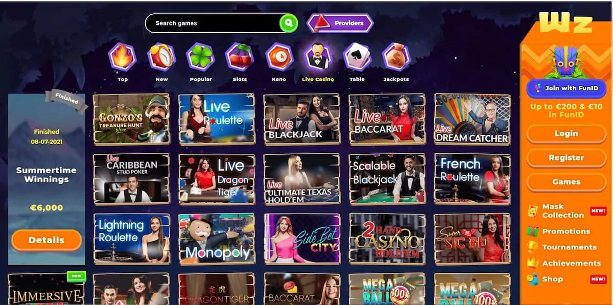 Wazamba Casino je spletna igralnica, ki ponuja več kot 2000 iger od vrhunskih proizvajalcev programske opreme, kot so NetEnt, Microgaming, Yggdrasil in Evolution Gaming. Na voljo je raznolik nabor iger, vključno z igralnimi avtomati, miznimi igrami, video pokerjem, igrami z jackpoti in igrami v živo. Wazamba Casino redno posodablja svojo zbirko iger, da igralcem ponudi najnovejše in najboljše igre na trgu.
