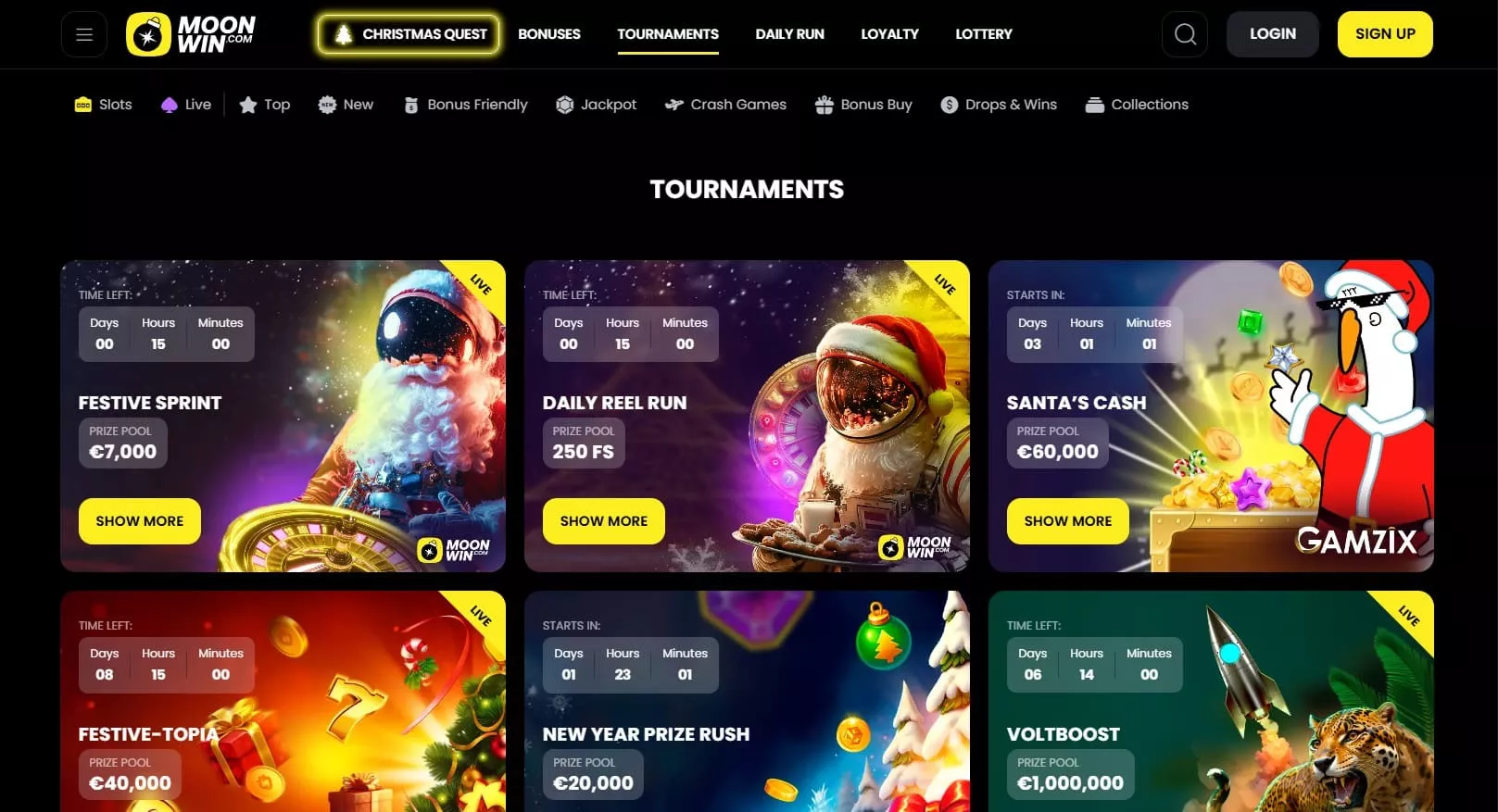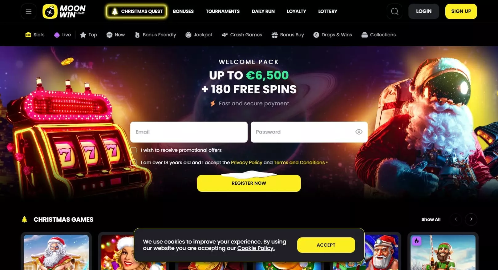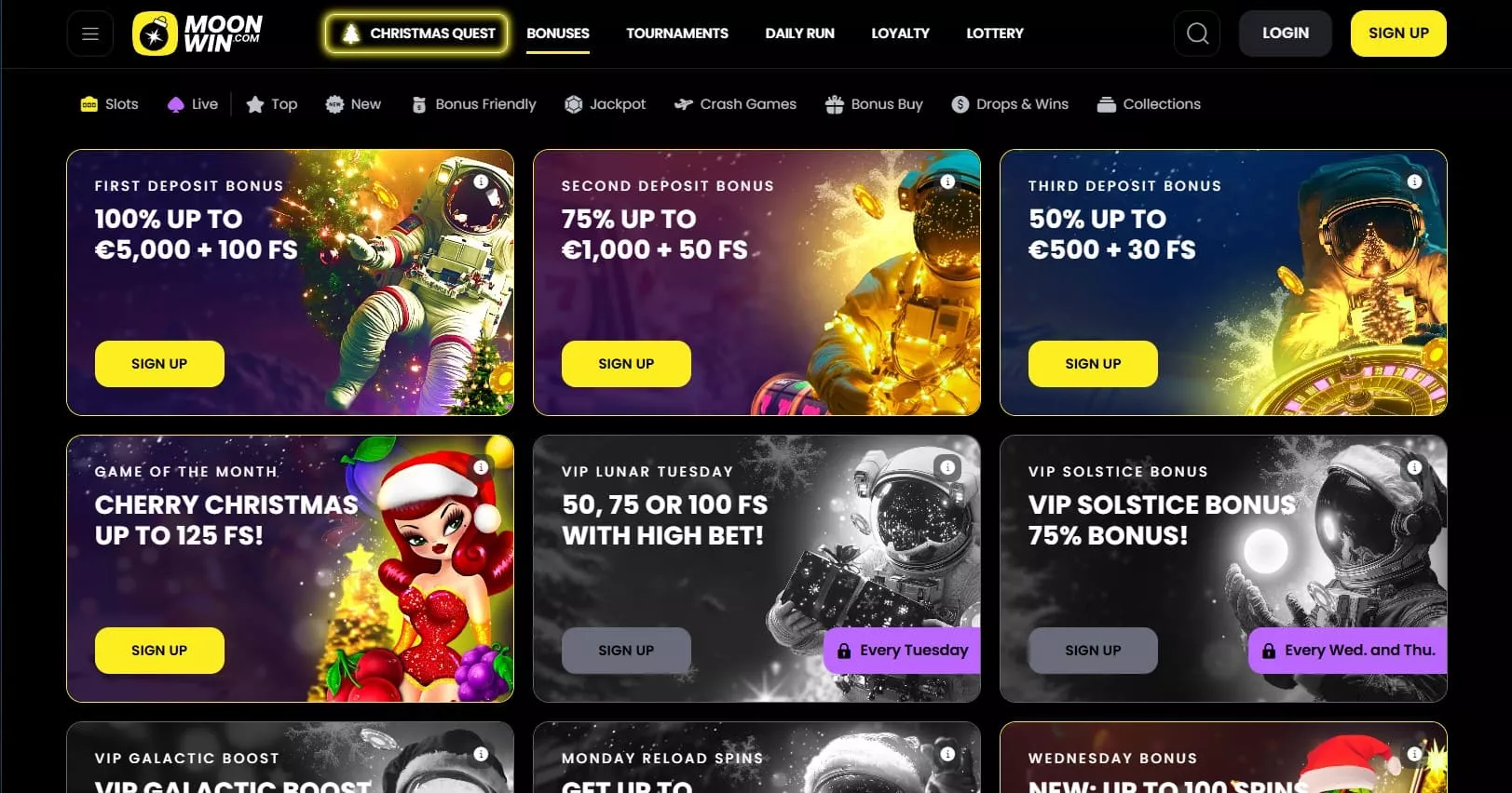 Novi igralci so deležni privlačnega paketa dobrodošlice, ki vključuje bonuse na prve tri depozite in brezplačne vrtljaje. Igranje na MoonWin online casino za pravi denar je zasnovana z mislijo na uporabnika, kar omogoča enostavno navigacijo in prijetno igralno izkušnjo.